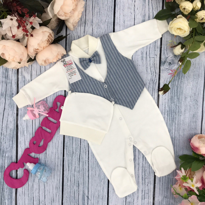 224-Г. Комбинезон, хлопок 100% интерлок, "Жилет новый" голубая полоса