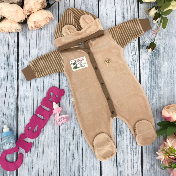 Теги: Купить велюровый комбинезон оптом от производителя. 225. Комбинезон с шапкой, 80% хлопок велюр, 20% ПЭ 56,62,68,74 цена,отзывы официальный сайт "Стеша Ачинск"