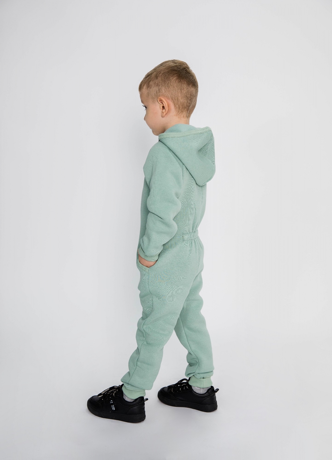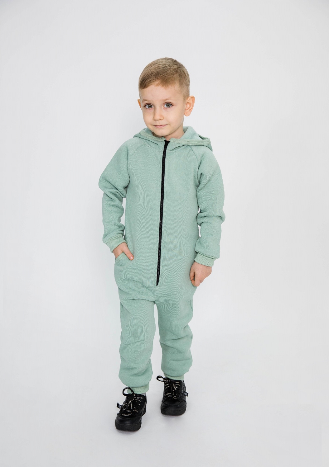 318-ОЛ. Комбинезон на молнии с капюшоном, олива, хлопок 65%, 35% ПЭ, 3 нитка толстовка (начёс) 86,92,98,104