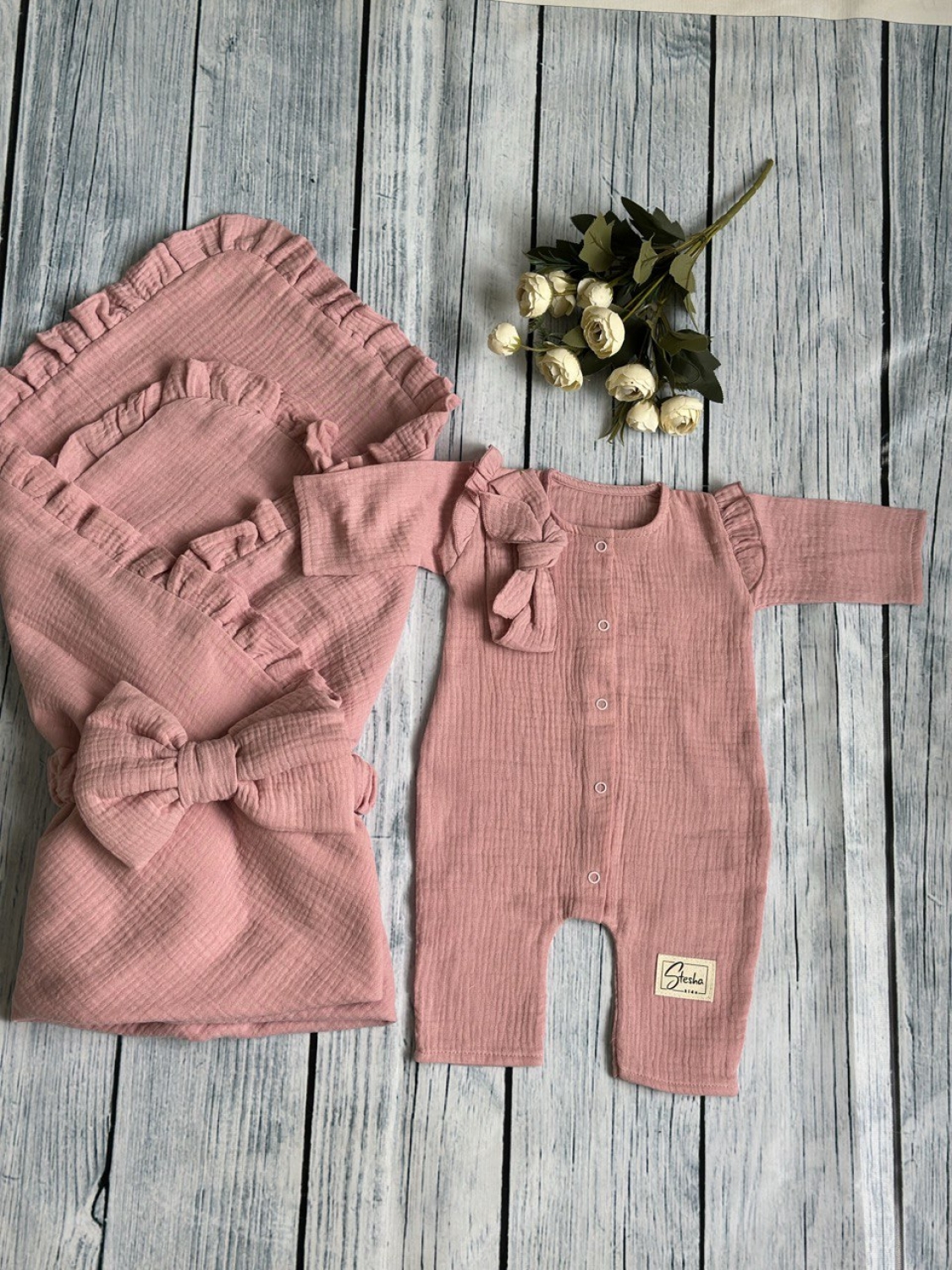 Конверт пеленка из муслина высшего качества для ребенка, + комбинезон 56 размера
