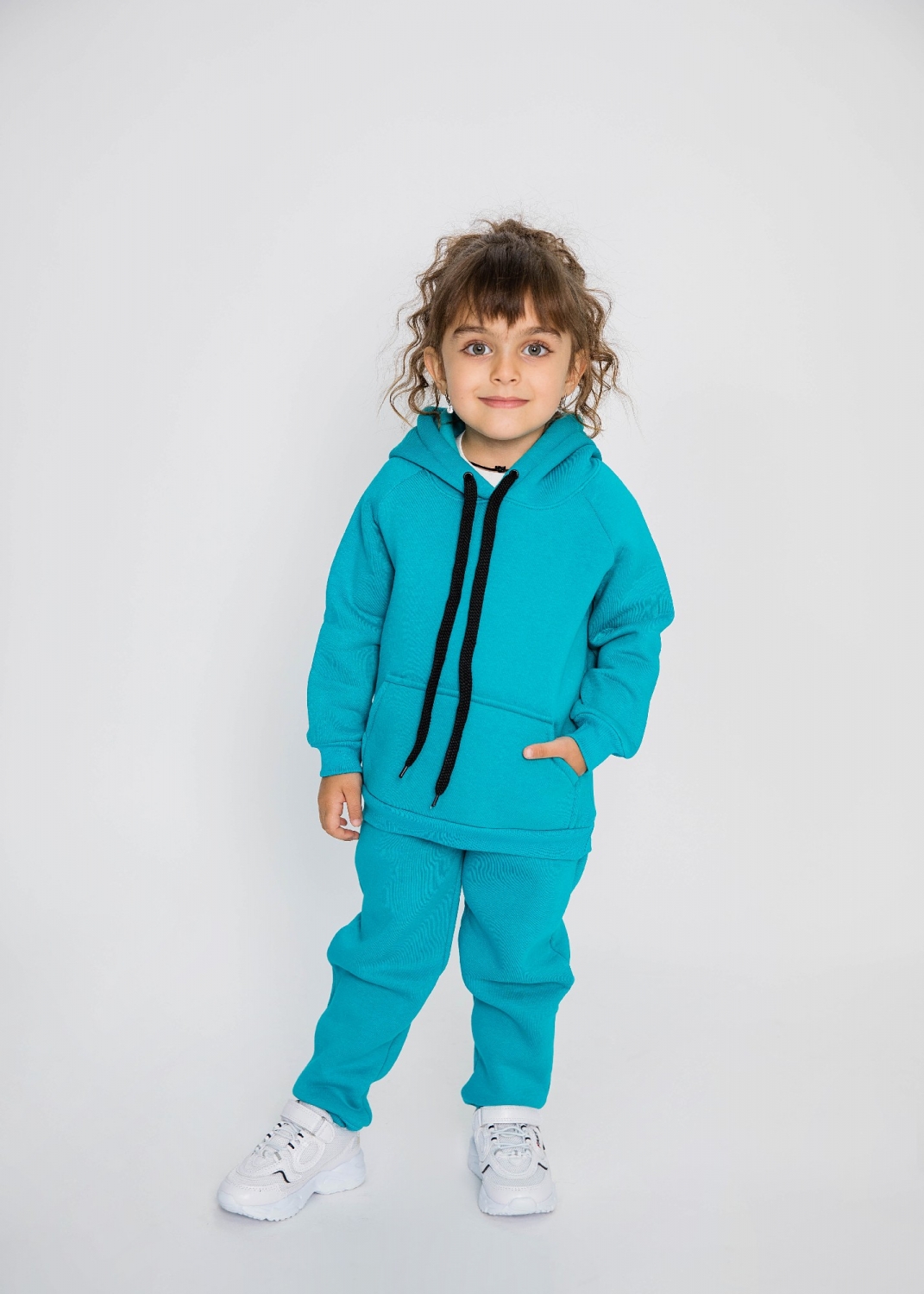 296-Б. Свитшот с капюшоном + Штаны, хлопок 65%, 35% ПЭ, 3-х нитка (начес) бирюза 98,104,110,116