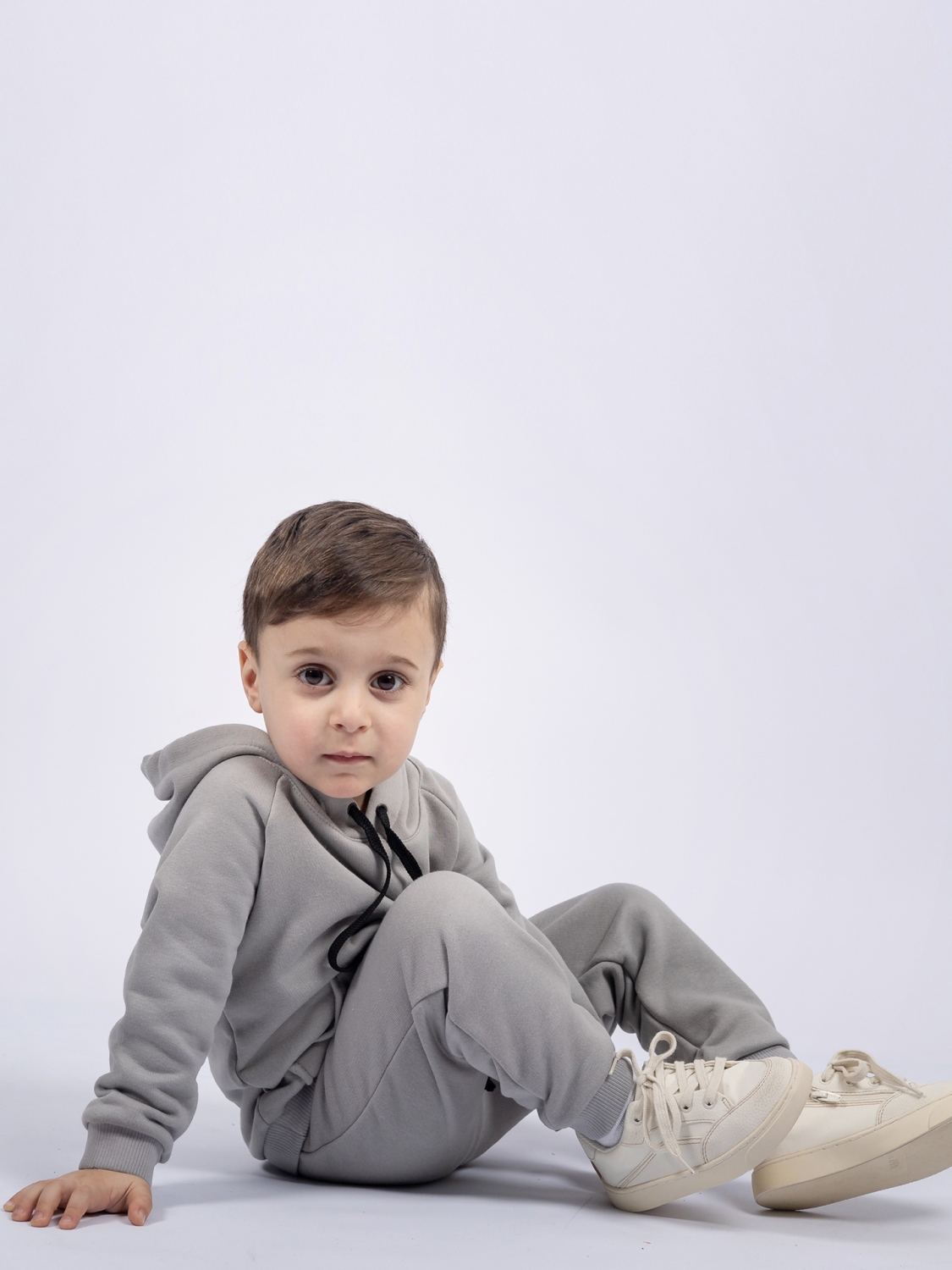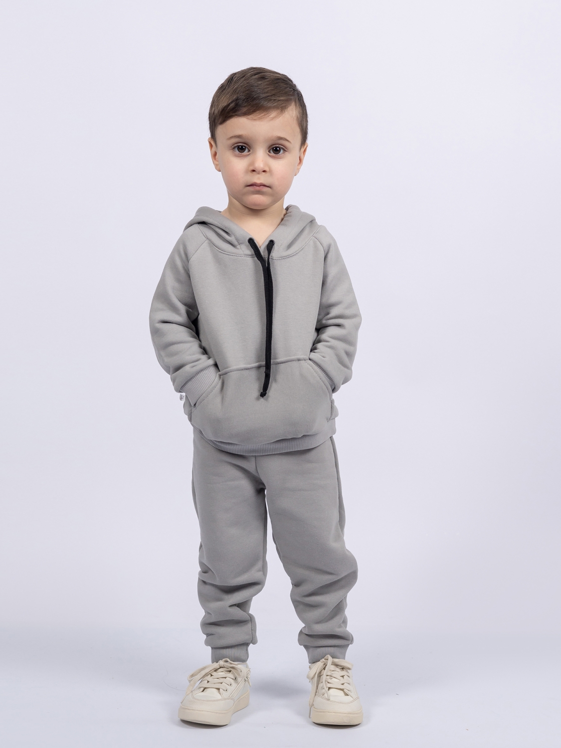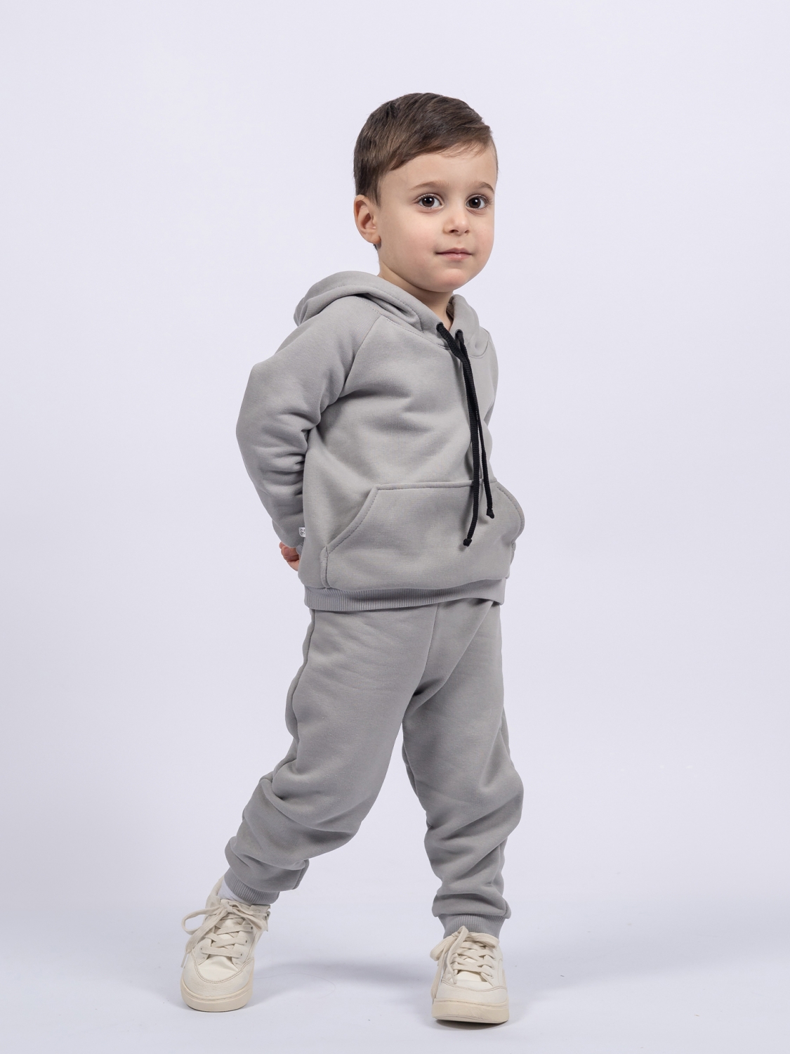 Теги: Детские костюмы оптом от производителя. 311-ГР. Свитшот с капюшоном + Штаны, хлопок 65%, 35% ПЭ, 3-х нитка ( без начеса) графит 80,86,92 цена,отзывы официальный сайт "Стеша Ачинск"