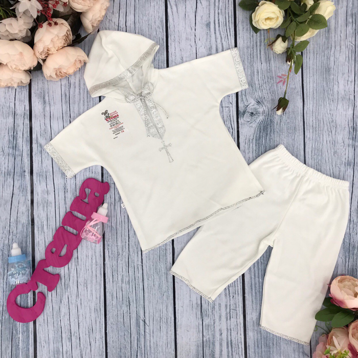 Крестильная рубаха со штанами, цвет -серебро.